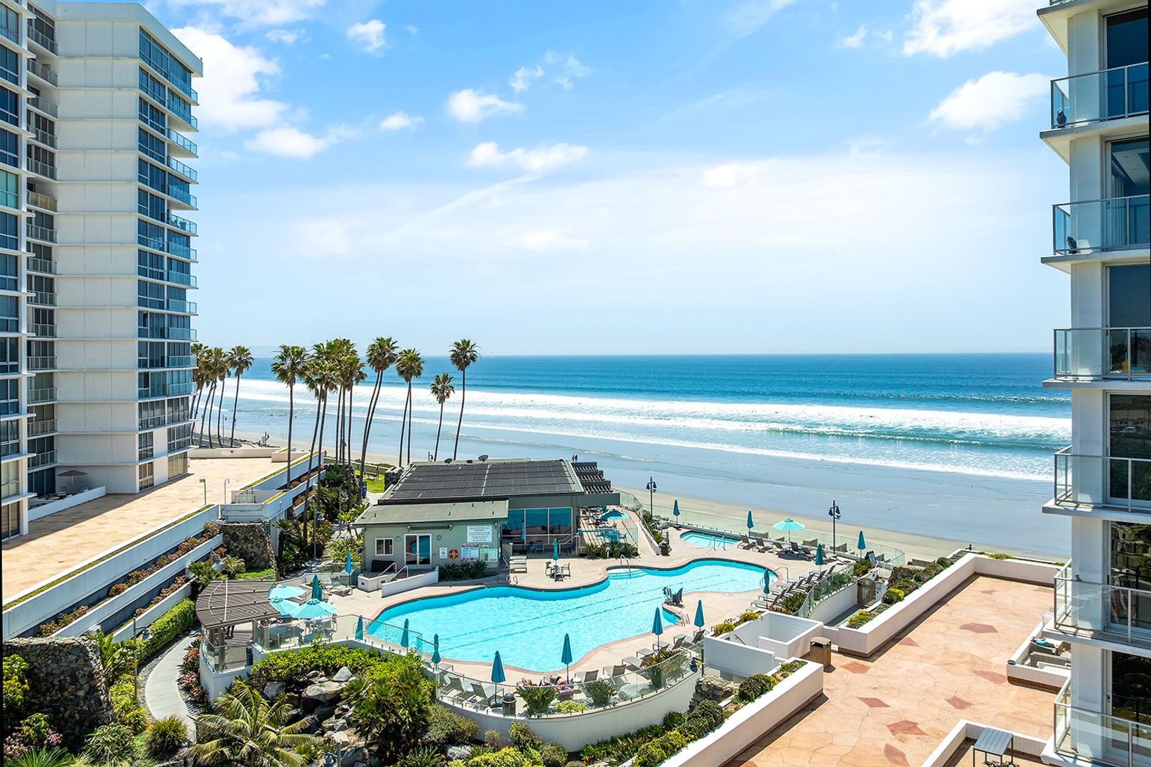 Beautiful vacation rental with ocean views - available now! Wonderful 2 bedroom, 2 bath unit in Coronado Shores featuring an abundance of natural light. Enjoy the finest in Coronado beachfront living in this unit located steps to the sand, Yacht Club and the Hotel del Coronado. Beachfront gated resort with 4 pools, tennis courts, beach club, pickleball and gym. Please note that prices are based on the season and length of stay. Rate is between $10,000-$19,000 depending on season and length of stay.