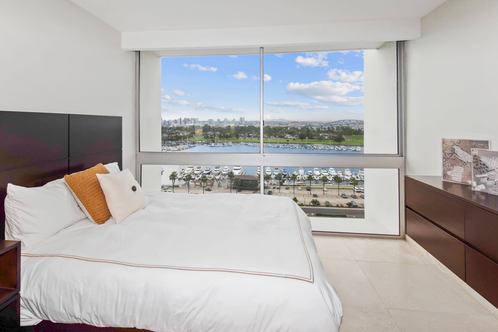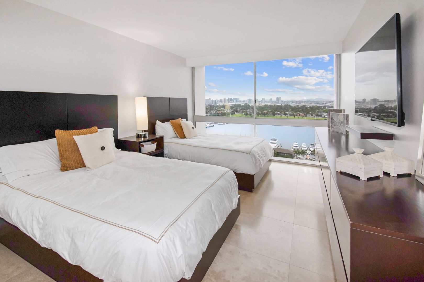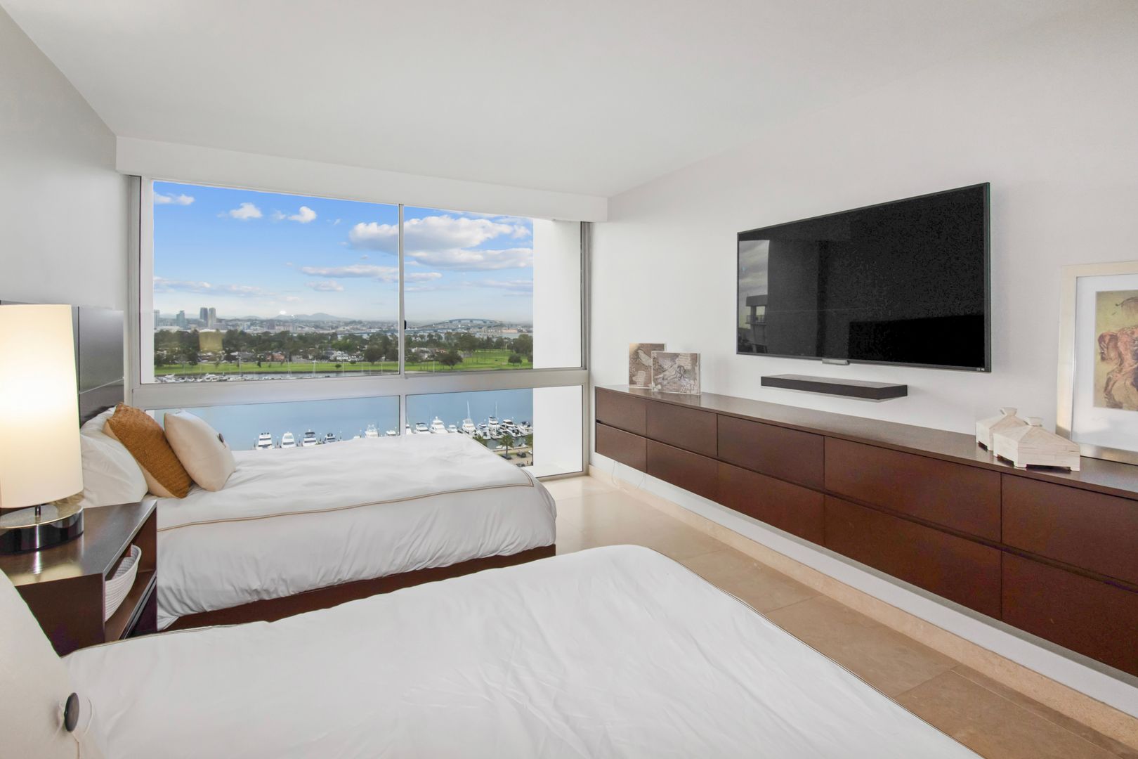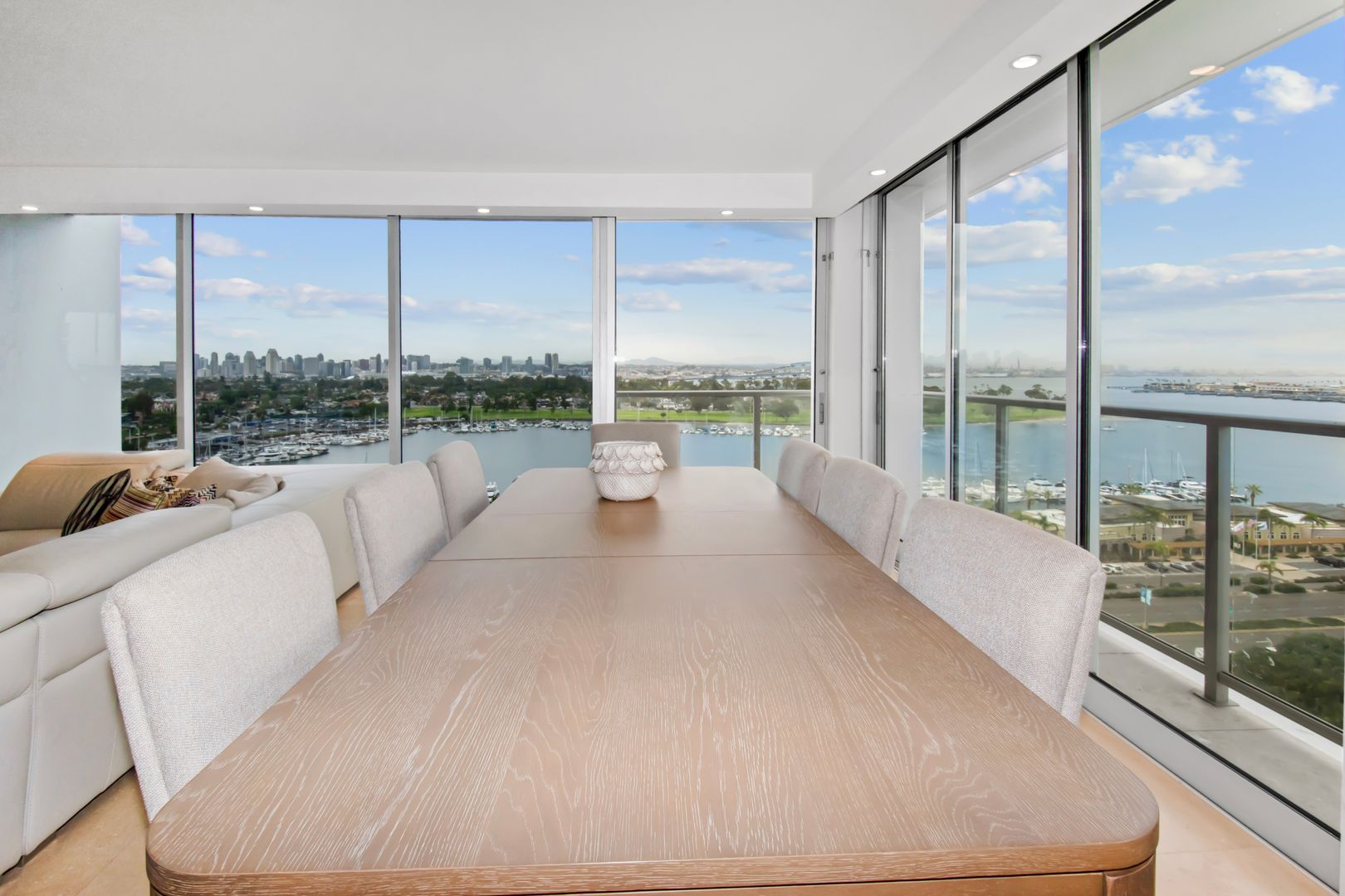 Vacation Rental in Coronado Shores, featuring 3BR, 3BA. Filled with natural light and tasteful furnishings, it offers panoramic views of the bay, Coronado Bridge, and San Diego skyline. Enjoy ocean breezes, stunning sunsets, and the relaxed luxury of life at The Shores. Coronado Shores complex features direct beach access, security and 24-hr doorman service, 4 pools, fitness center plus spa, beach clubhouse, pickleball & tennis courts. Just steps away to the ocean and the bay, a short walk to restaurants, shopping, golf course and more. Rate is $12,000-$30,000, short term and long term availability. Rates vary based on season and length of stay.