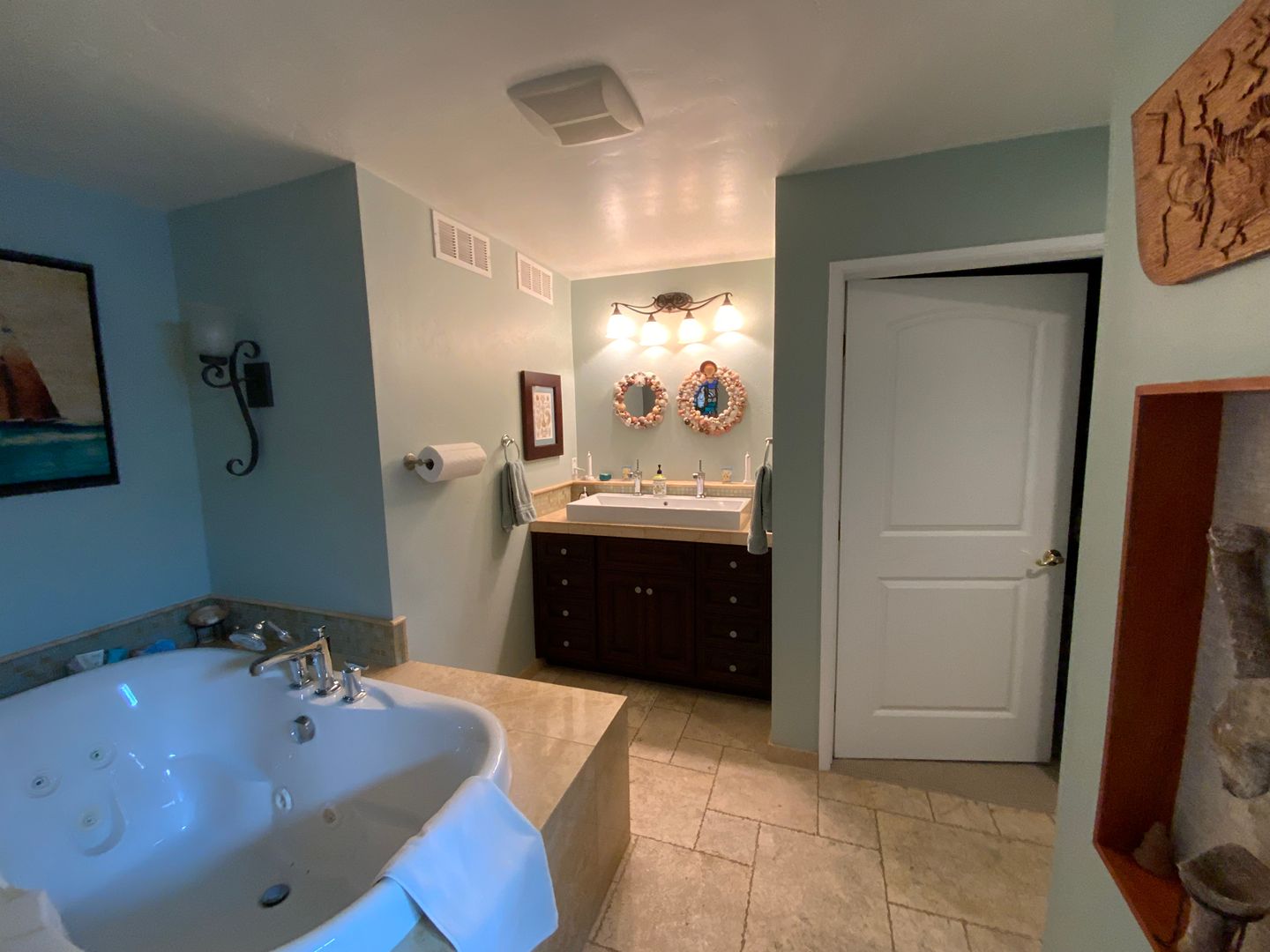 Vacation home on the bay with boat dock. Available now thru August 15th. Features a large patio to soak in the Sunrise and Panoramic southern Bay views. This 4 bedroom home features include elevator, gourmet kitchen with large island, granite counter tops, large living area with game table. Three Bedrooms upstairs with queen beds with one bedroom downstairs with a queen Murphy bed along with a private entrance. Stone fireplaces in both the Master and Living Room. One garage space with electric hook up is available. Enjoy all the comforts of home and then some... you don 't have to look any further for your next relaxing getaway.