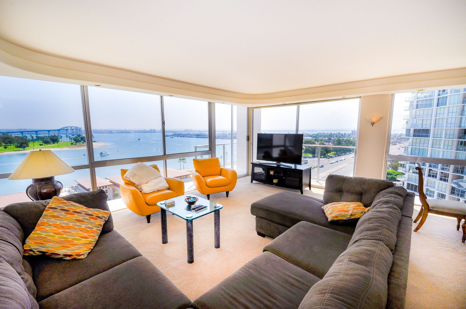 Three bedroom, three bath corner unit in El Encanto Tower available for July & August. Unobstructed bay views overlooking Glorietta Bay, Coronado Bridge and the Coronado Yacht Club! Enjoy the finest in Coronado beachfront living in this unit located steps to the sand and the Hotel del Coronado. Gated resort with 4 pools, tennis/pickle ball courts, beach club and gym!