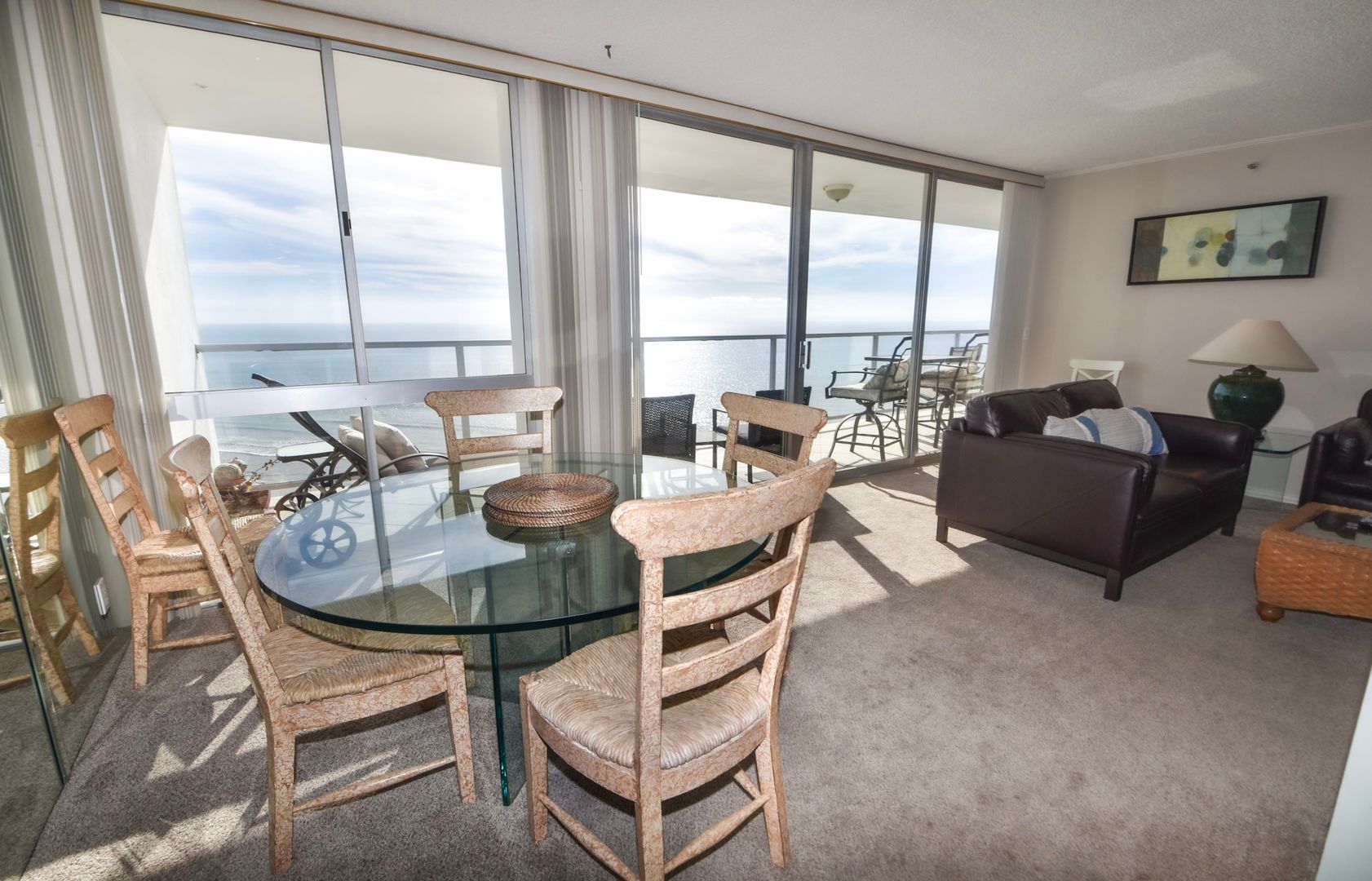 Vacation rental at Coronado Shores! Furnished 2 bedroom 2 bath Condo offers stunning views of the ocean and is just steps away from the beach. Imagine waking up every morning to the sound of the waves and the smell of the ocean breeze. In addition to the prime location, our unit is within walking distance to restaurants and shops, making it the perfect spot for a vacation. You will also have access to 8 tennis courts and 4 pool/spa areas, as well as the Beach Club.