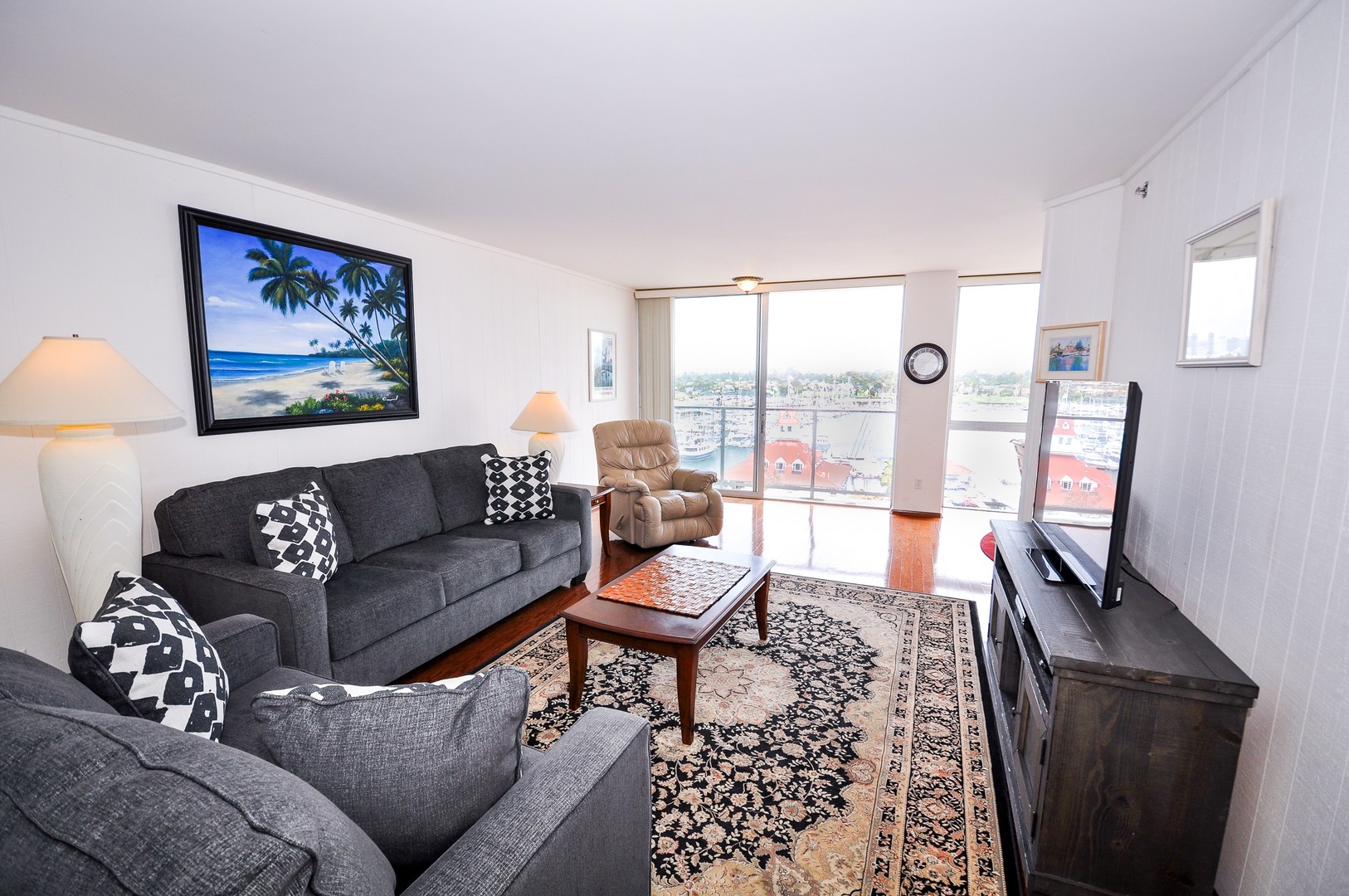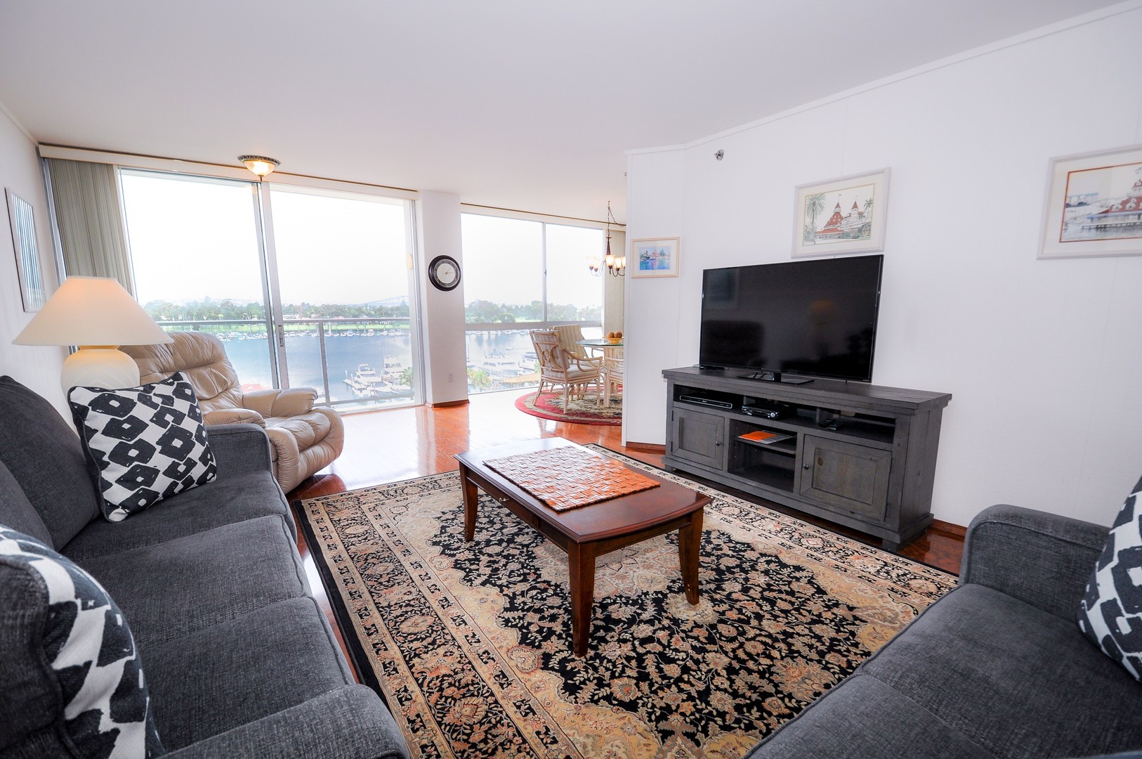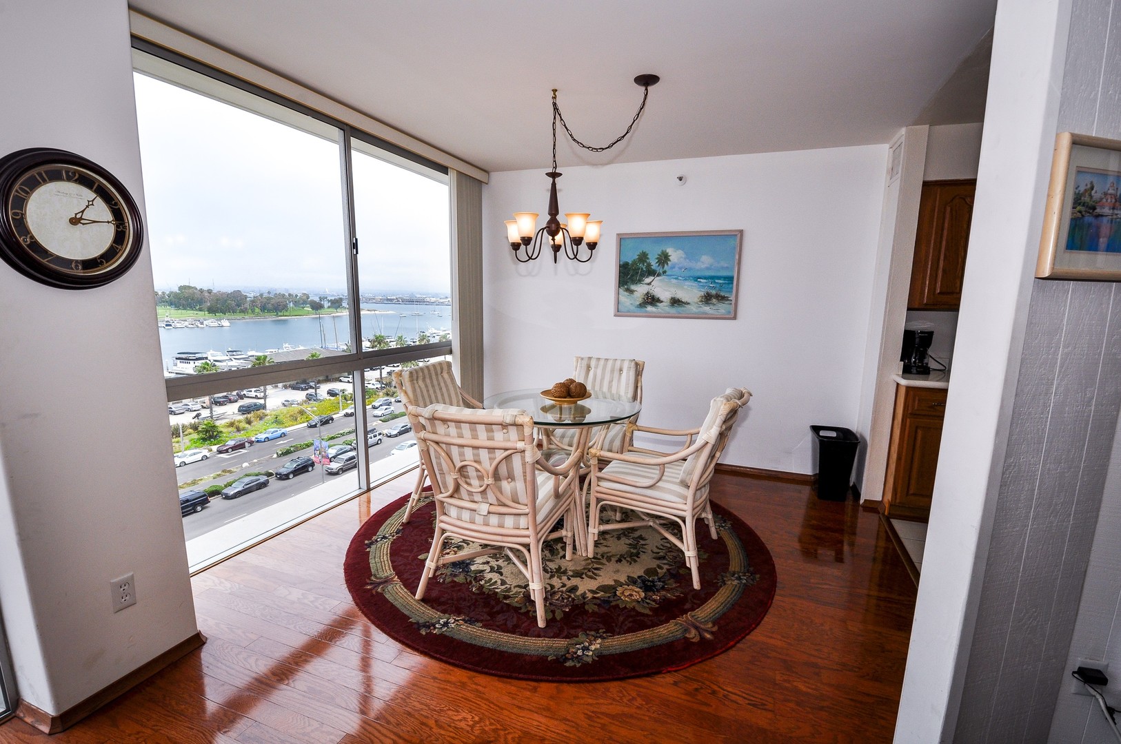 Offered as a seasonal rental. Rates vary on length of stay and time of year. Prime rate could be up to $7,500. Beautiful one bedroom unit in the Coronado shores. Offers unobstructed views of Coronado bridge, Glorietta bay and the beautiful San Diego skyline. Hardwood floors throughout. Just steps to the beach, pool, tennis courts & walking distance to the Del, restaurants & shops.