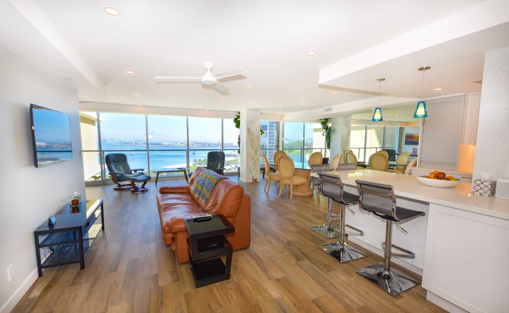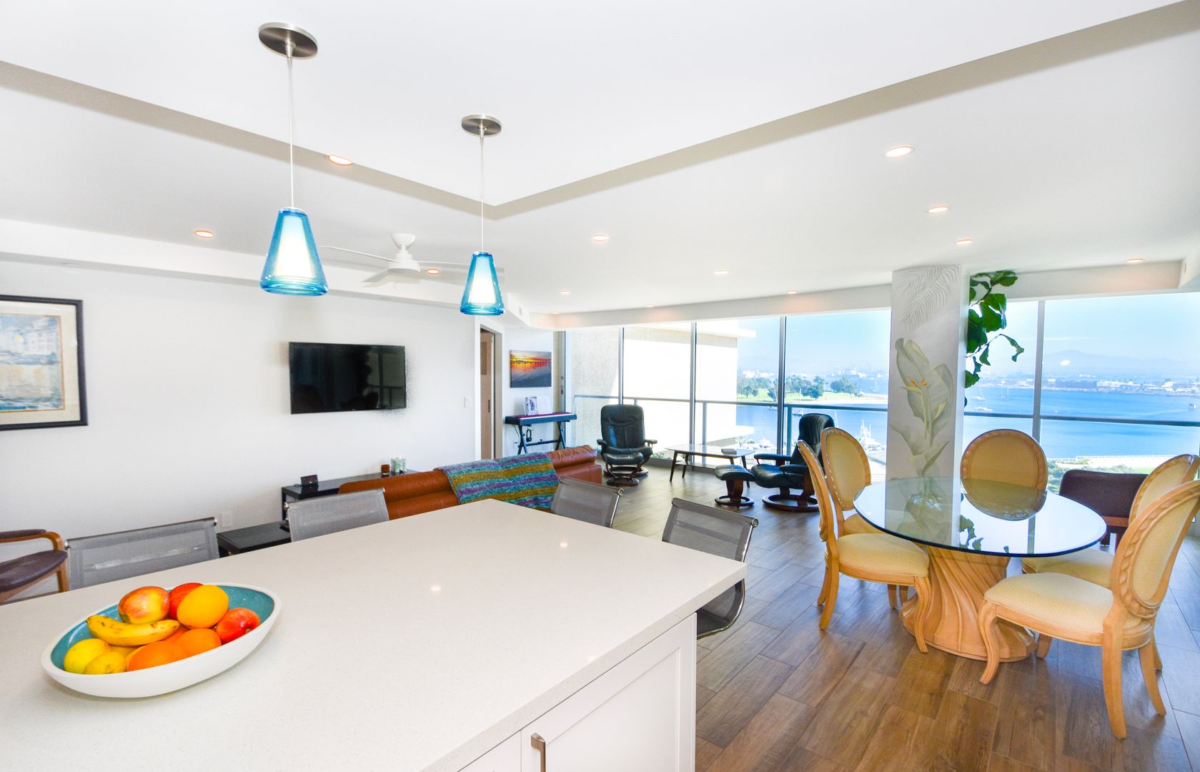 Vacation Rental in Coronado Shores! Rates vary depending on time and length of stay. Updated large one bedroom/ one bath with bay views. Recently renovated and top of the line. Featuring electric power shades, stainless steel Miele appliances and porcelain tile flooring. Enjoy the finest in Coronado beachfront living in this unit located steps to the sand, Yacht Club and the Hotel del Coronado. Gated resort with 4 pools, tennis/pickle ball courts, beach club and gym!