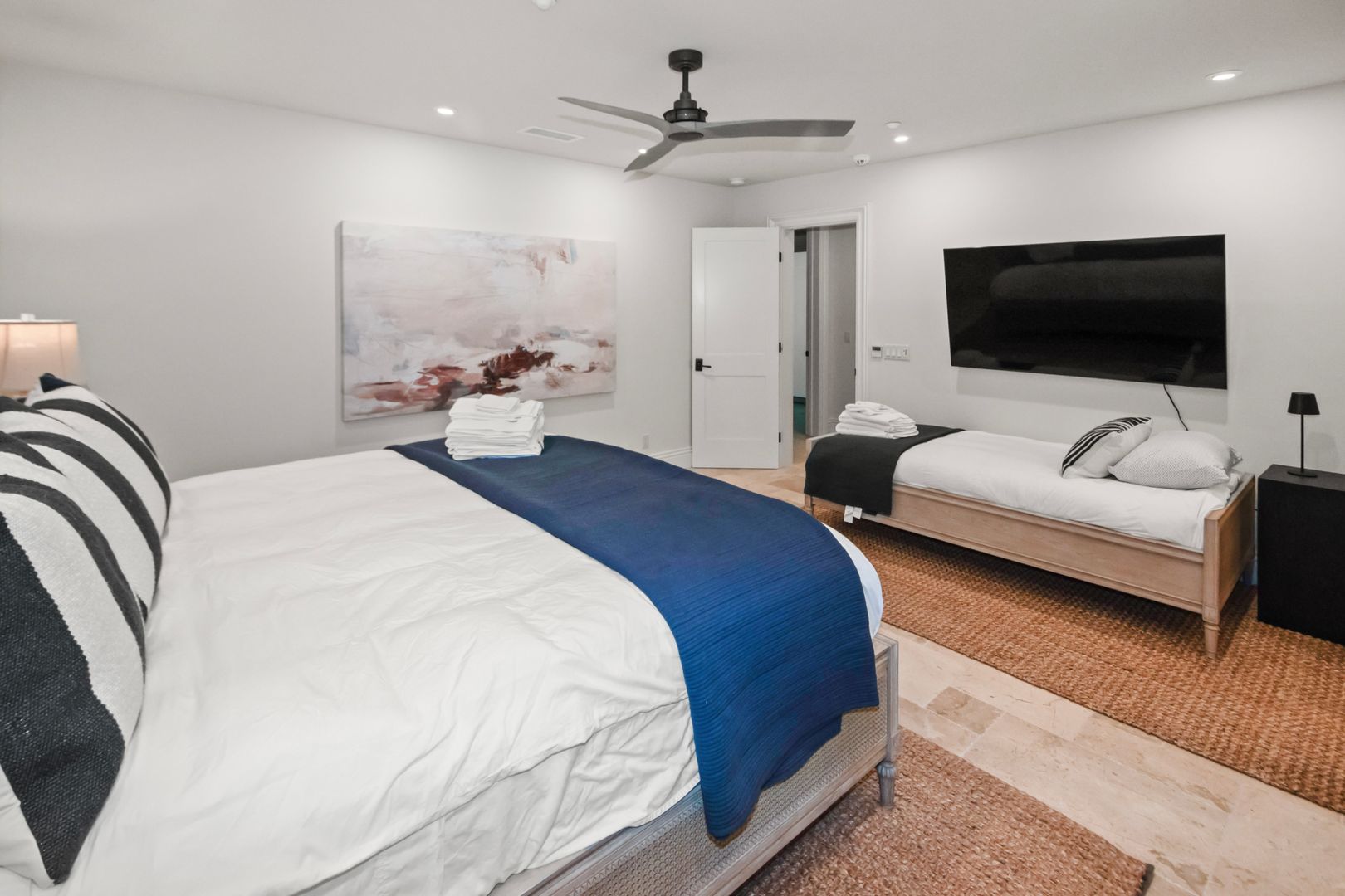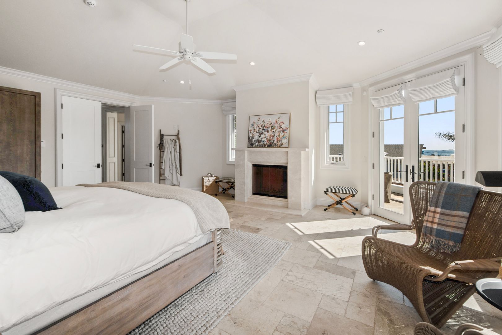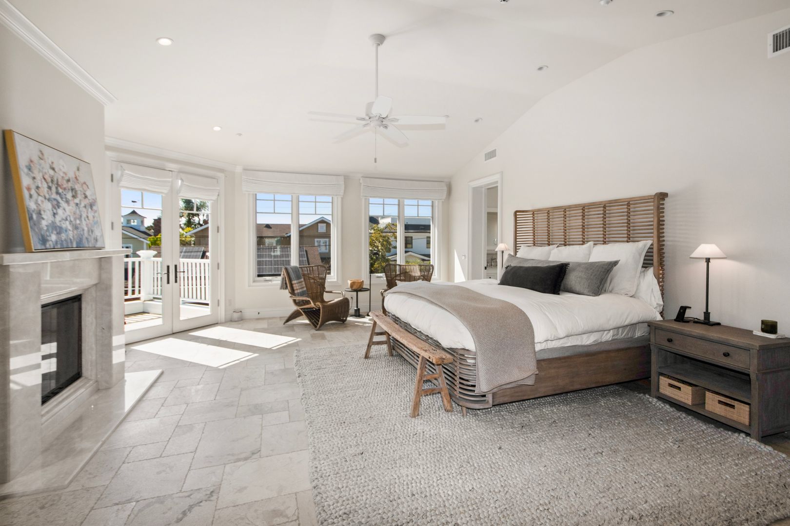 Upstairs, a second open-concept living space includes an additional kitchen, dining, and lounge area with retractable doors that lead to a massive balcony—ideal for soaking in the ocean breeze and views. The primary suite serves as a luxurious retreat with a spa-inspired bathroom and stunning coastal outlooks.