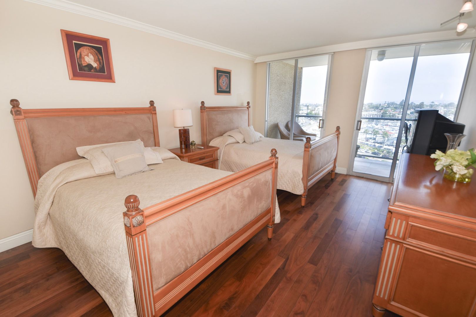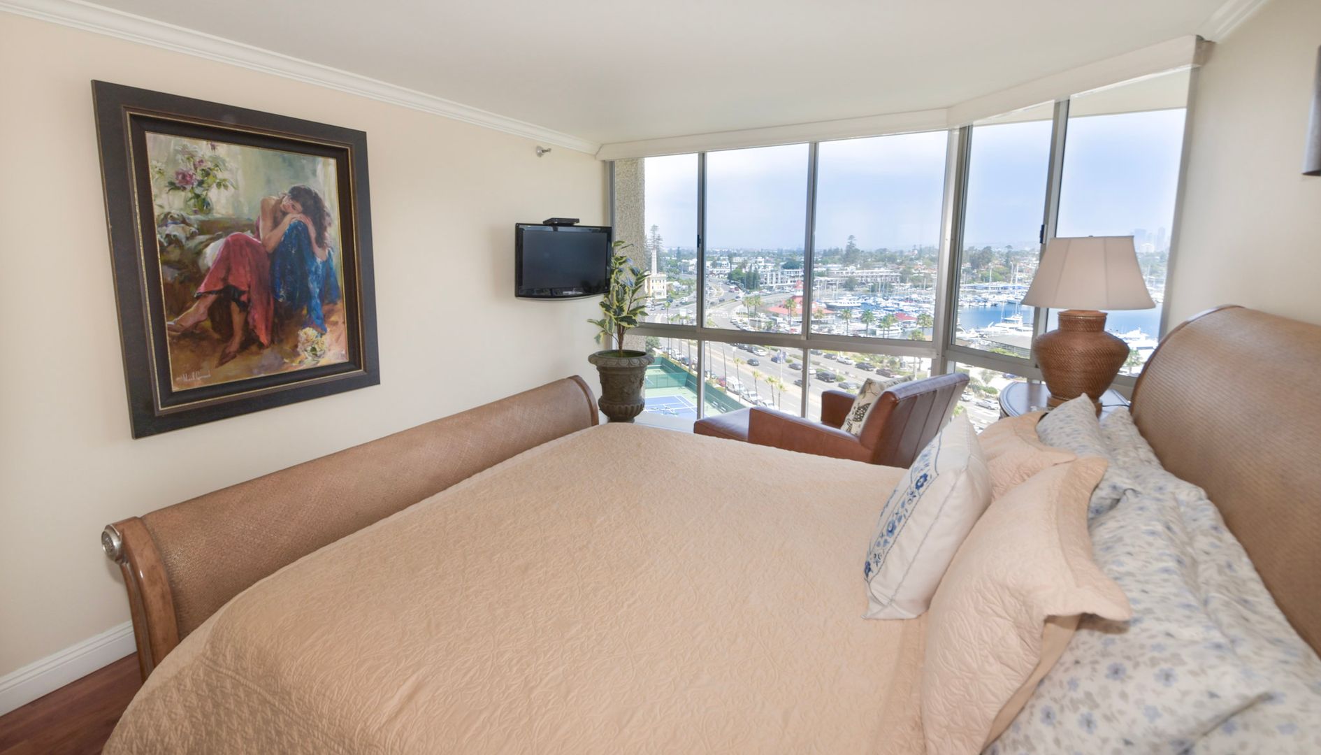 One of the best locations in Coronado Shores, featuring stellar views of Glorietta Bay, San Diego Skyline, and Coronado Bridge. This is a great opportunity to vacation on a desirable 2 bedroom, split floor plan unit in La Princesa Tower. Unit features hardwood floors, granite counter tops, bay window in master bedroom, large balcony with a spectacular view and many other upgrades. This desirable complex features 24-hour front desk service, four sparkling pools, eight championship tennis courts, and two beach front clubhouses.