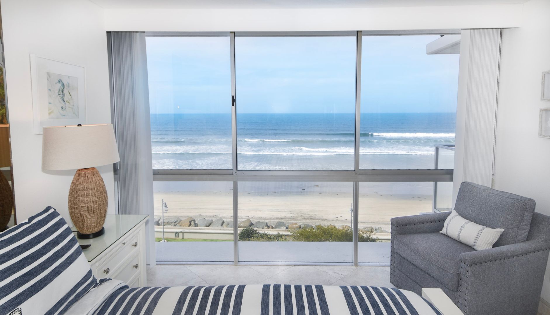 Luxurious one bedroom unit in the Coronado Shores This 1 bed, 1 bath unit in El Camino offers beautiful Ocean views. Updated and fully furnished. Granite counter tops and Tile floors throughout. Community offers: access to the white sandy beach, swimming pool, tennis courts, clubhouse and a 24 hour doorman/ security available. Walk to the famous Hotel Del Coronado, shopping and dinning in the Coronado Village.